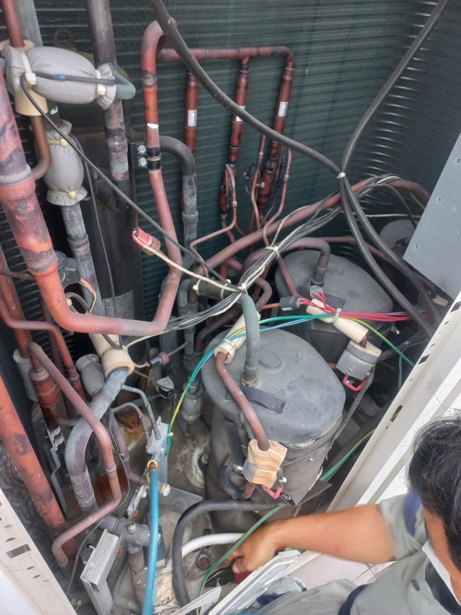 Máy lạnh có thể không hoạt động có thể do hết gas, nhân viên đang tiến hành bơm gas lại